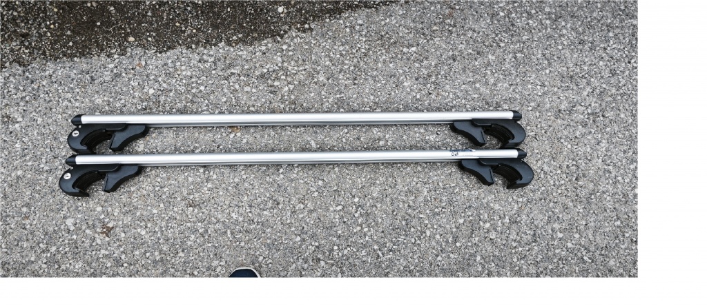Prodajem nosače za poprečne šine korištene svega 2x.Auto je promjenjen i ne odgovaraju mi.Ključ i imbus ključ za montažu postoji.Nosivost do 90kg,aširina je 115cm.
