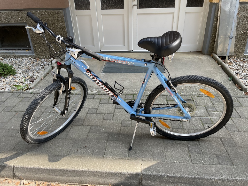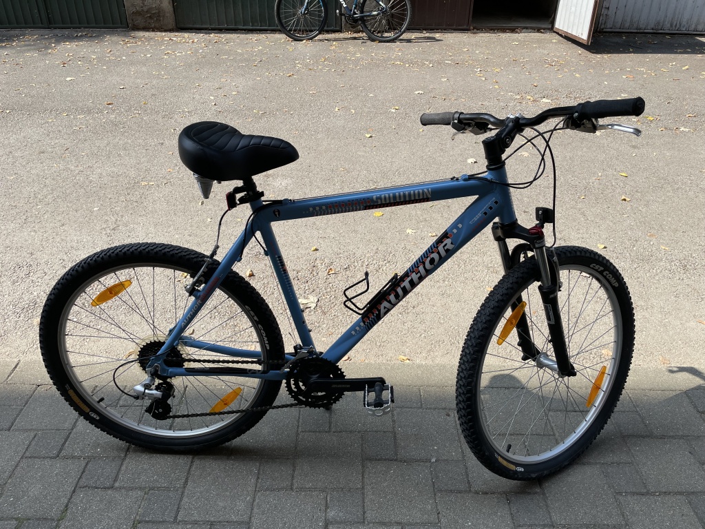 Bicikl Author Solution Logic Series u odličnom stanju; Aluminijski, lagan, "26 kotači, Mjenjač Shimano Acera 24 brzine (8x3), Pressforming tubes, Frame size (seat tube lenght "21 inch = 53 cm), Kočnice V brake, kliješta Tektro Governal aluminijski, nova lulica (imam i staru koja je duža), sjedalo Author, nogica, držač za bidon