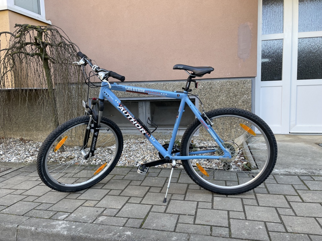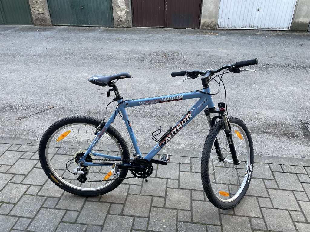 Bicikl Author Solution Logic Series u odličnom stanju; Aluminijski, lagan, "26 kotači, Mjenjač Shimano Acera 24 brzine (8x3), Pressforming tubes, Frame size (seat tube lenght "21 inch = 53 cm), Kočnice V brake, kliješta Tektro Governal aluminijski, nova lulica (imam i staru koja je duža), sjedalo Author, nogica, držač za bidon