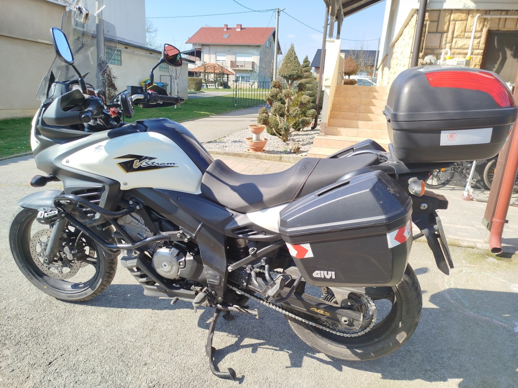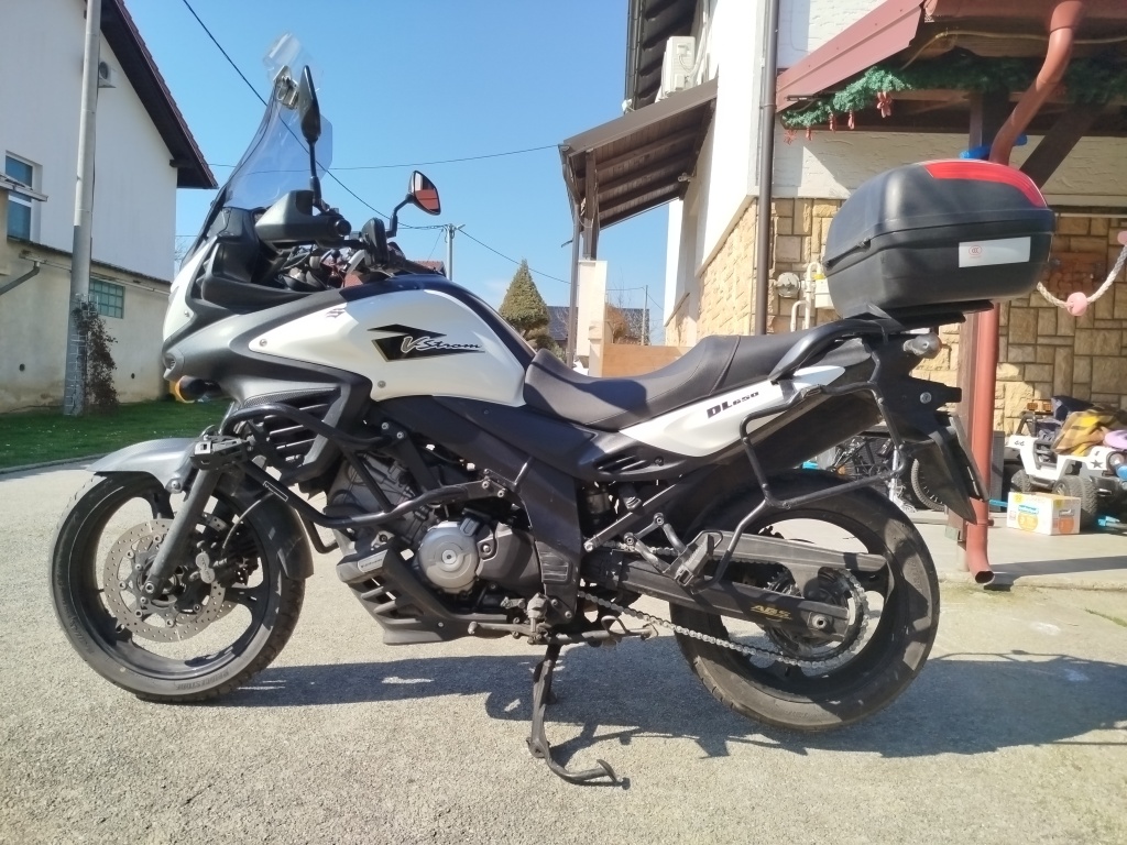 Suzuki DL650AL2 ABS 2012 Prva registracija 2013. 2. Vlasnik Nove gume Novi lanac i lančanici Touring vizir Puig Štitnici ruku Suzuki OEM Ralica Suzuki OEM SW Motech Crash Bar Suzuki centralni nogar Oem Inox štitnik hladnjaka Nosač kufera Suzuki Kufer Nosači bočnih kufera Givi Bočni kuferi Givi Motor spreman za sezonu, napravljen servis Cijena nije fiksna