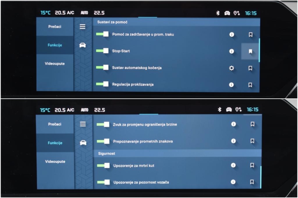 Boja: Siva metallic,digitalna automatska dvozonska klima, daljinsko zaključavanje, ESP, ASR, ABS,napredni sustav za pomoć pri vožnji (ADAS), 6x airbag’s, servo, 4x el. podizači stakala, el. parkirna kočnica, audio sustav, DAB ( Digitalni Audio Broadcasting), USB priključak, Android&Apple Carplay, bluetooth priključak za telefon,bežično punjenje telefona,sjedala kombinacija koža/stoff sivo/crni,kožni volan, multifunkcijske tipke na volanu, indikator smanjenog pritiska u pneumaticima, ISOFIX učvršćivač za dječje sjedalo, sklopivo stražnje sjedalo, dvodjelno 60/40, ukrasni detalji unutrašnjosti od aluminija, putno računalo, Kamere za parkiranje naprijed i natrag, Active Safety Brake-sustav automatskog kočenja,Lane assist-pomoć za zadržavanje u prometnoj traci, tempomat i ograničavač brzine, Prepoznavanje prometnih znakova, Upozorenje na nepažnju vozača,upouorenje na mrtvi kut, ECO Start & Stop, Navigacija, zaslon osjetljiv na dodir, Head-Up Display, LED dnevna Svjetla, LED Glavna Svjetla, Zakretni farovi, parking senzori naprijed i nazad, keyless go-paljenje na tipku,head up display,aluminiske felge 18″,panoramski krov, ,Ručni Mjenjač 6 Brzina , Shine oprema,1.2 TurboBenzinski Motor