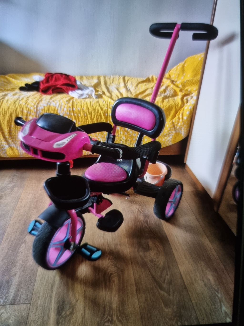 Prodajem tricikl u odličnom stanju, ima i pedale i sjenilo, svjetla i zvučne efekte te glazbenu kutiju moguće spojit na mobitel. Cijena 10 eura.