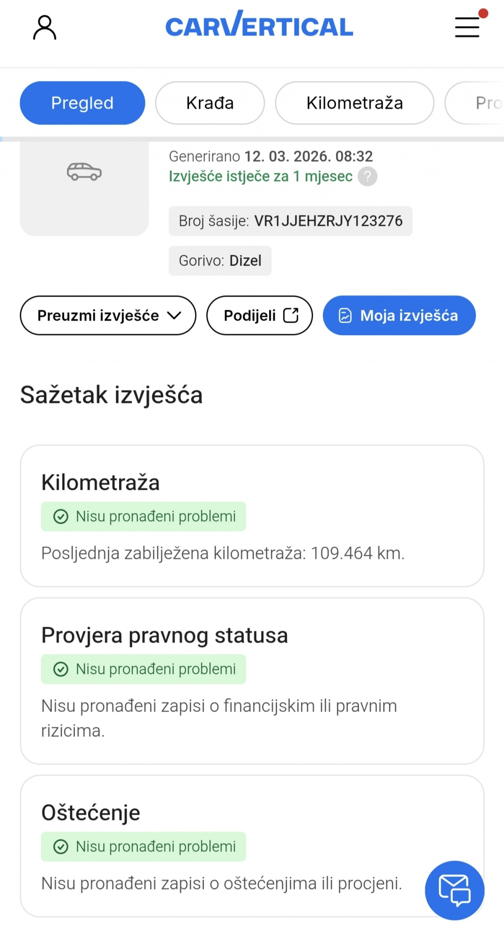 Uz auto dajem Car Vertikal izvješće.