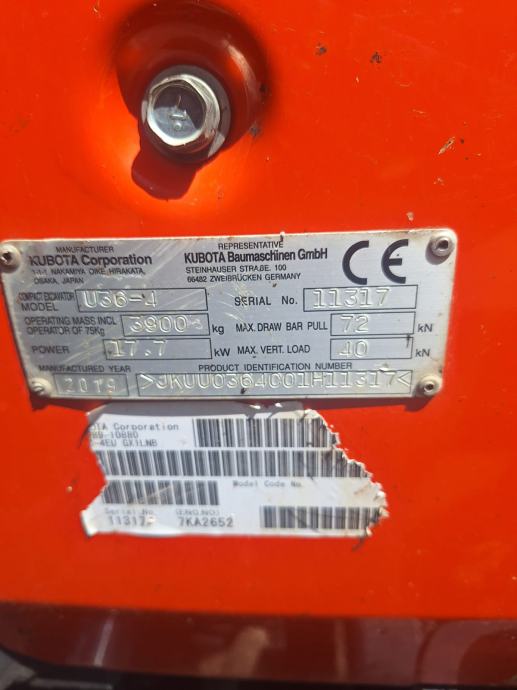 Mini bager Kubota U36-4 god.pr.2019 samo...