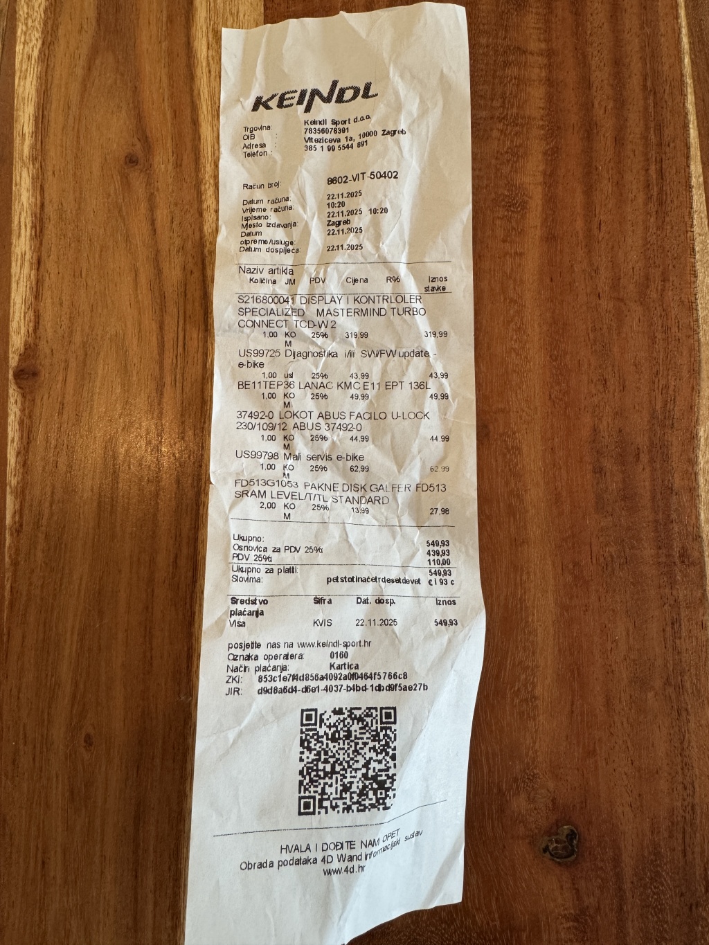 U 11/2025. napravljen je servis na kojem su zamijenjeni displej, lanac i pakne te je napravljena dijagnostika.