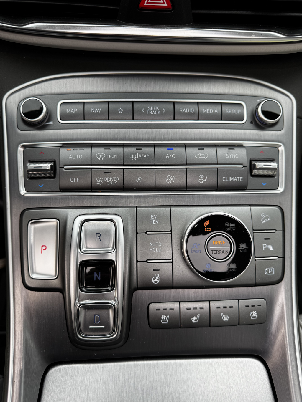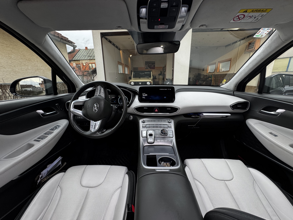 Od opreme ima Hyundai connect za kontrolu vozila preko mobitela, panoramski krov, grijano-ventilirajući sicevi, grijanje volana, grijani stražnji sicevi, dvozonska automatska klima, HUD display, adaptivni tempomat, autopilot, senzor mrtvog kuta, 360 stupnja senzori sa kamerama (prednja, stražnja, bočne i ptičja perspektiva), automatsko parkiranje, automatsko otvaranje i zatvaranje prtljažnika, daljinsko isparkiravanje vozila i još mnogo toga. auto ima svu moguću dodatnu opremu koja postoji za taj auto.