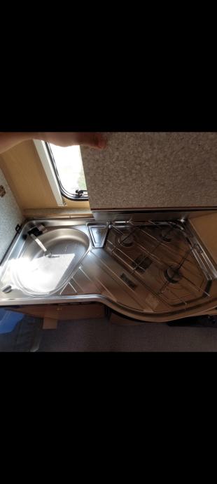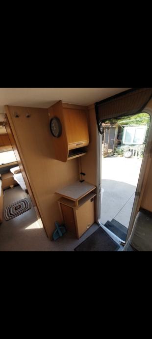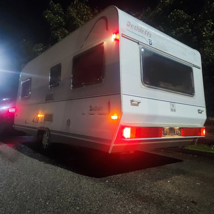 Kamp prikolica Njemačka Detlheffs sa komplet opremom u izvrsnom stanju sa krovnom Dometik klimom i tendom na razvacenje ispred prikolice.WC rotirajući (školjka na okretanje po potrebi) ,vanjsko praznjenje,tuš kabina ,umivaonik.komplet kuhinja sa friziderom plin-struja.Komarnici i zastita od sunca na svim prozorima.Prikolica je unutra malo korištena ,uredna i prostrana sa lijepim rasporedom i odvojenim krevetima na jednoj strani.a na drugoj strani veliki krevet .Moze spavati 4-5 osoba Uskoro HR reg.po potrebi kupca.Papiri uredni u dolasku iz Njemačke zbog odjave vani.Prikolica odlicna za putovati i za stacionirat. Dostava besplatna do 40 km ,za dalje HR dogovor-povoljno.