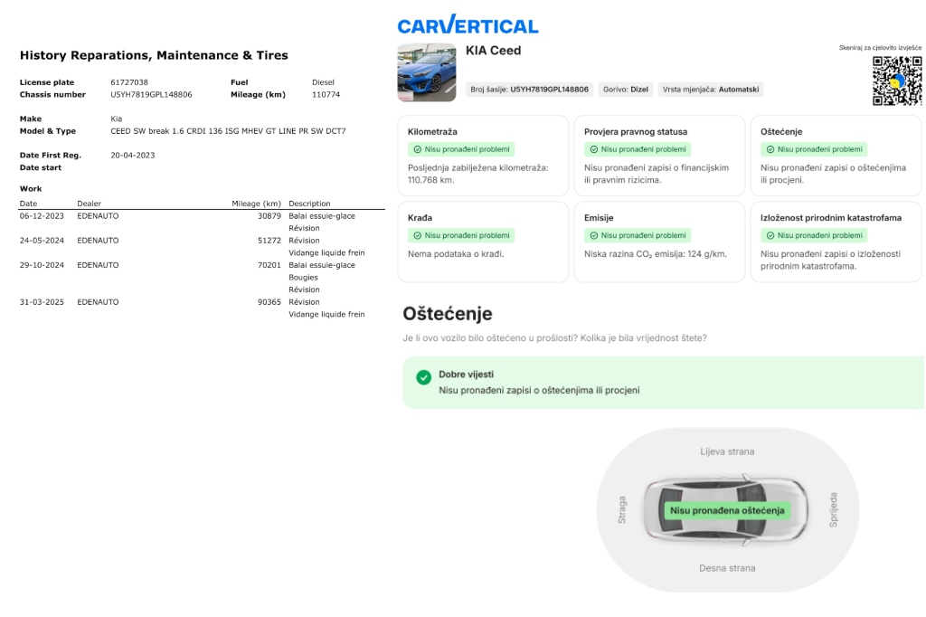 – Trajno jamstvo na prijeđeni broj kilometara i porijeklo vozila.