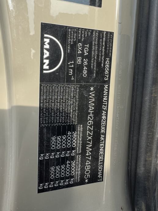 MAN 26.480 6x4 Sanduk sa mjestom za kran, 2007 god. Prodajem rabljeno vozilo: MAN 26.480 6x4 Sanduk sa mjestom za kran Cijena 24.900 €
