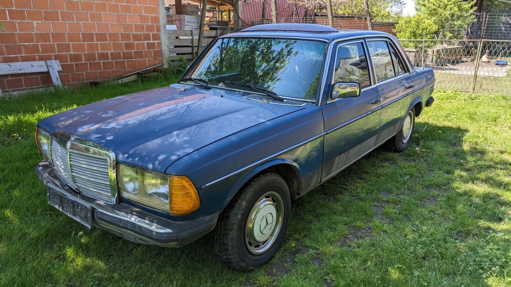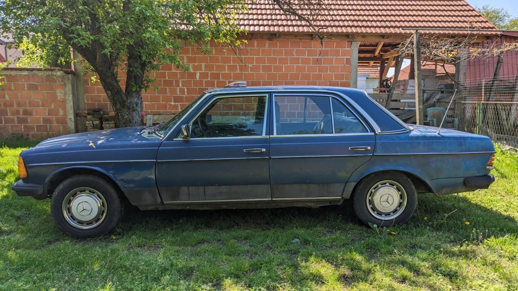 Prodaje se Mercedes W123 u voznom stanju, limuzina, nije registriran (od 28.3.2023.). Tamno plave boje, limarija traži neka ulaganja, a mehanički je u vrlo dobrom stanju.