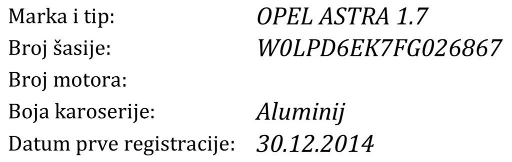 12/2014. godina, uvoz Njemačka, drugi vlasnik,