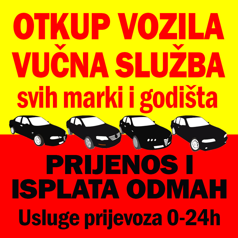 OTKUP ISPRAVNIH I KARAMBOLIRANIH VOZILA, KOMBIJA svih marki i godišta. Prijenos i isplata odmah! VUČNA SLUŽBA, usluge PRIJEVOZA osobnih, dostavnih i kombi vozila