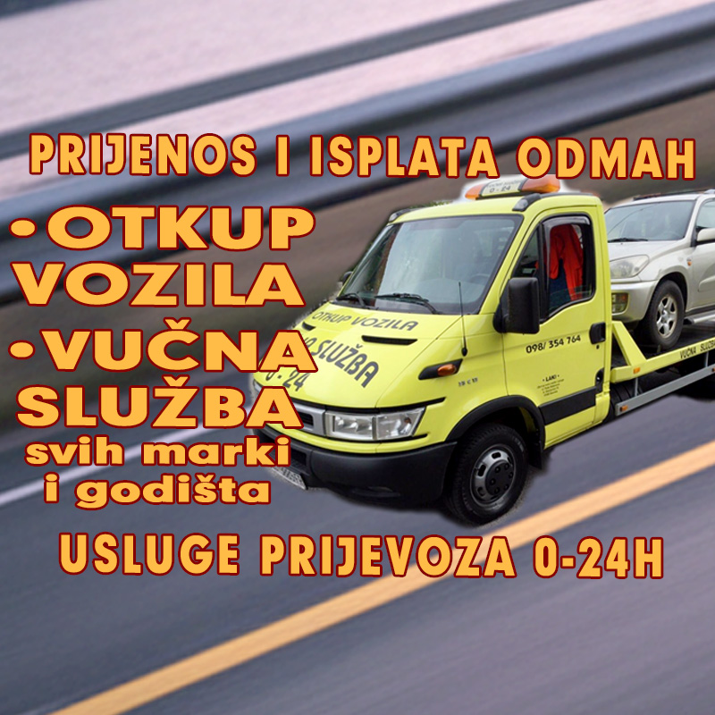 OTKUP ISPRAVNIH I KARAMBOLIRANIH VOZILA, KOMBIJA svih marki i godišta. Prijenos i isplata odmah! VUČNA SLUŽBA, usluge PRIJEVOZA osobnih, dostavnih i kombi vozila