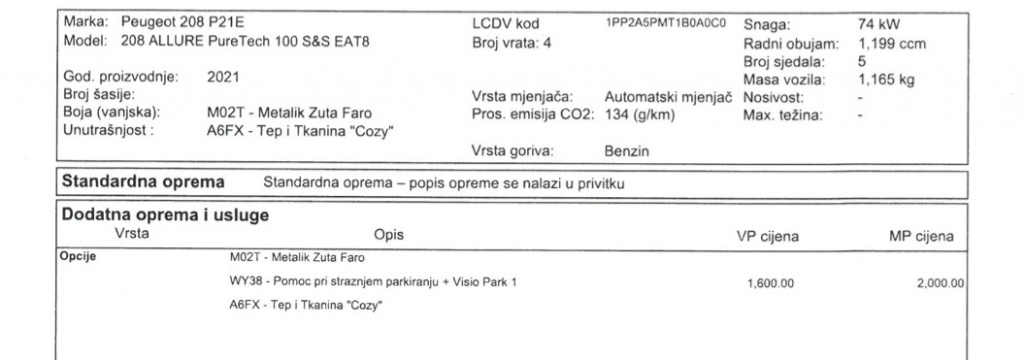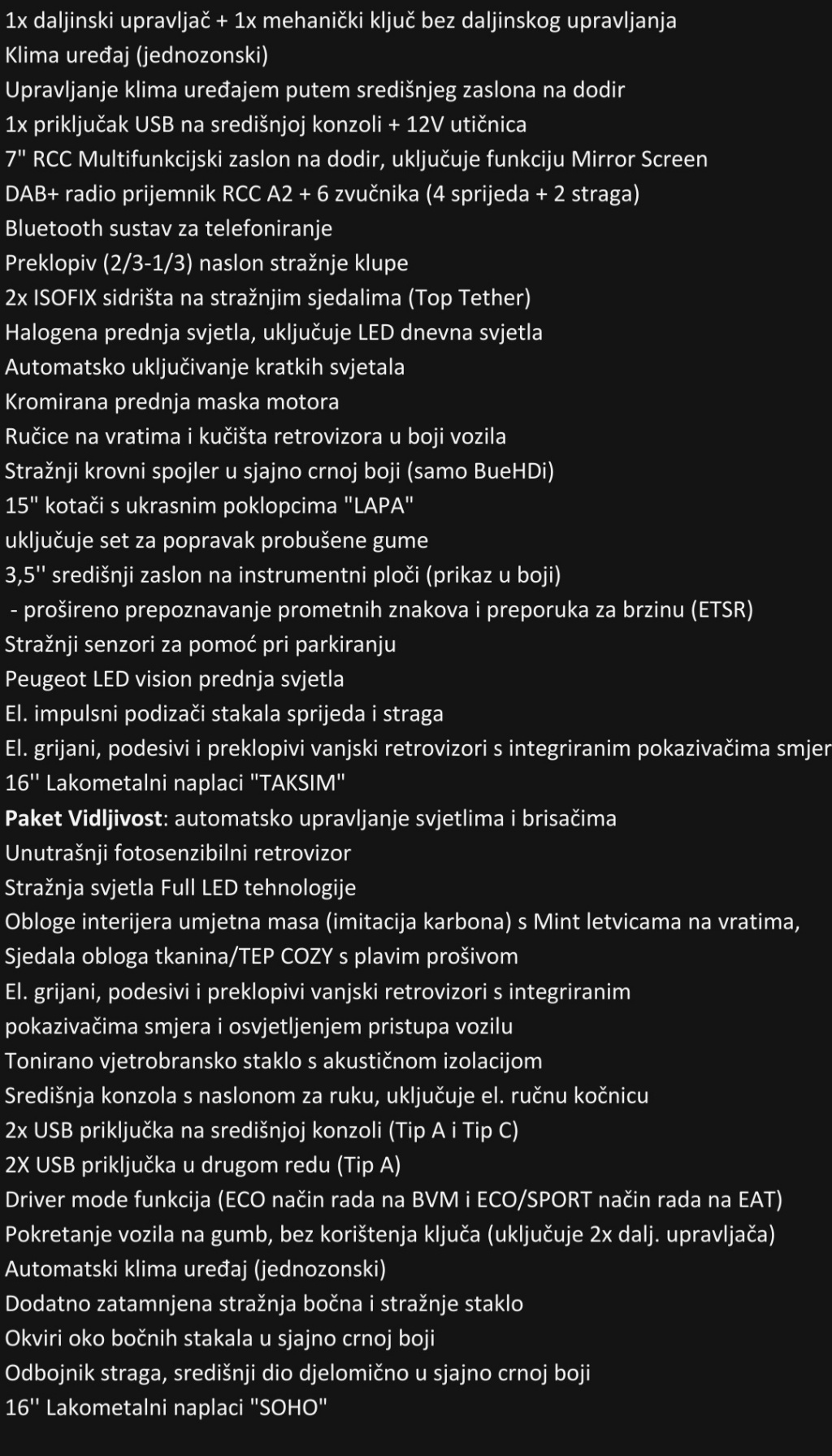 Udobnostel. podešavanje ogledala, el. podizanje prednjih stakala, el. podizanje stražnjih stakala, grijanje ogledala, handsfree, komande na upravljaču, parkirni senzori, servo upravljač, središnji naslon za ruku, tempomat, upravljač podesiv po visini