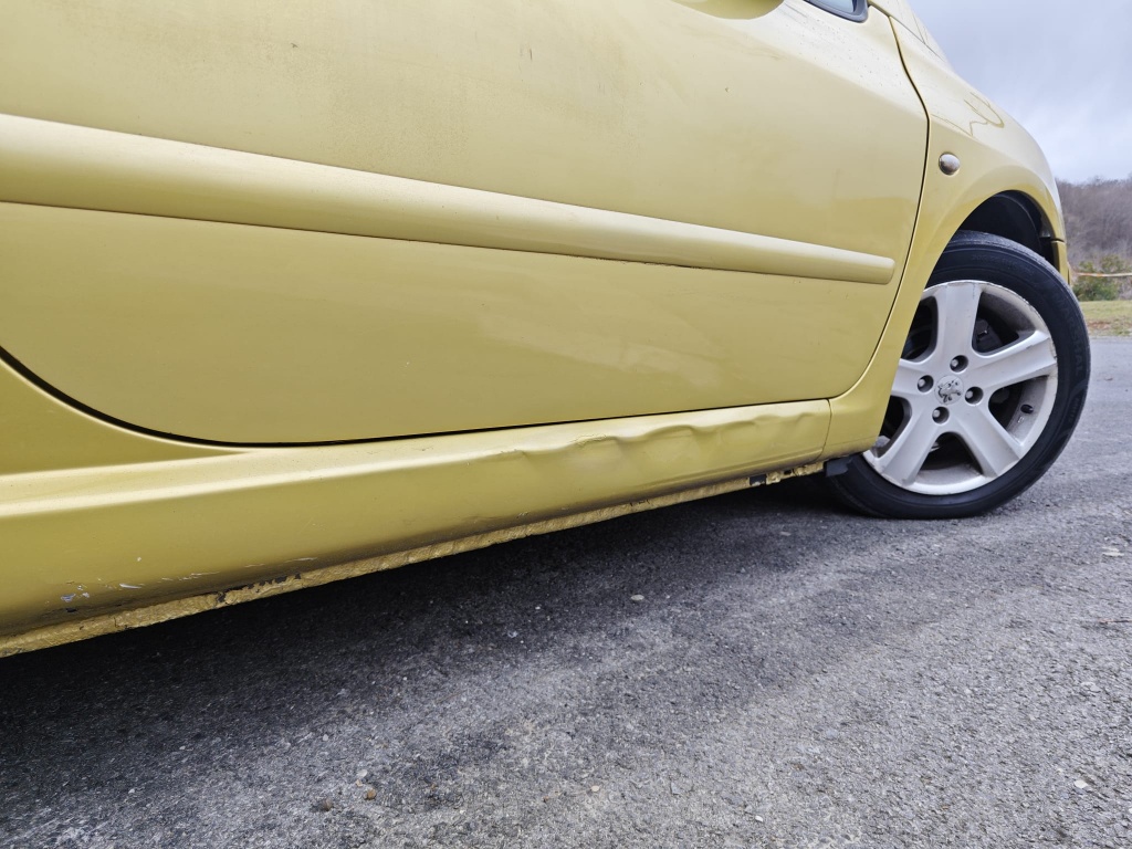 Na mjestima ispucan lak i desni prag je udubljen, vidljivo na slikama.
