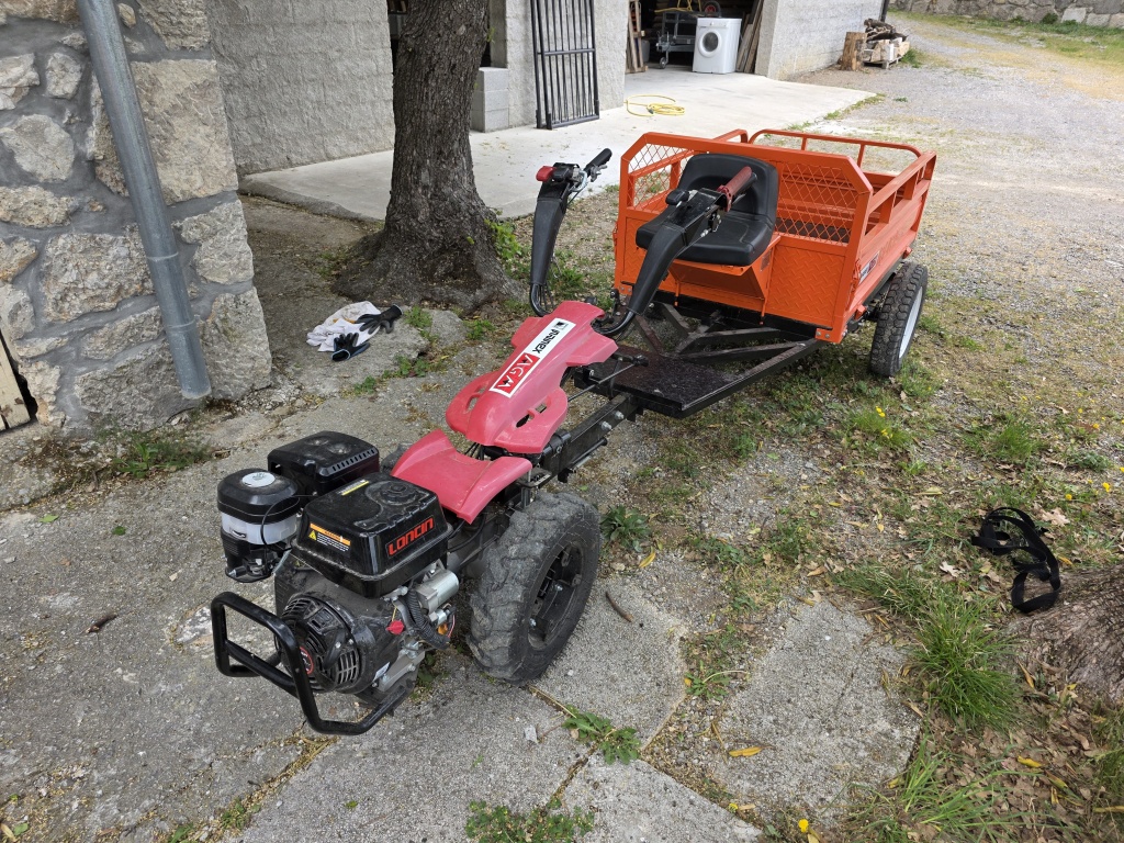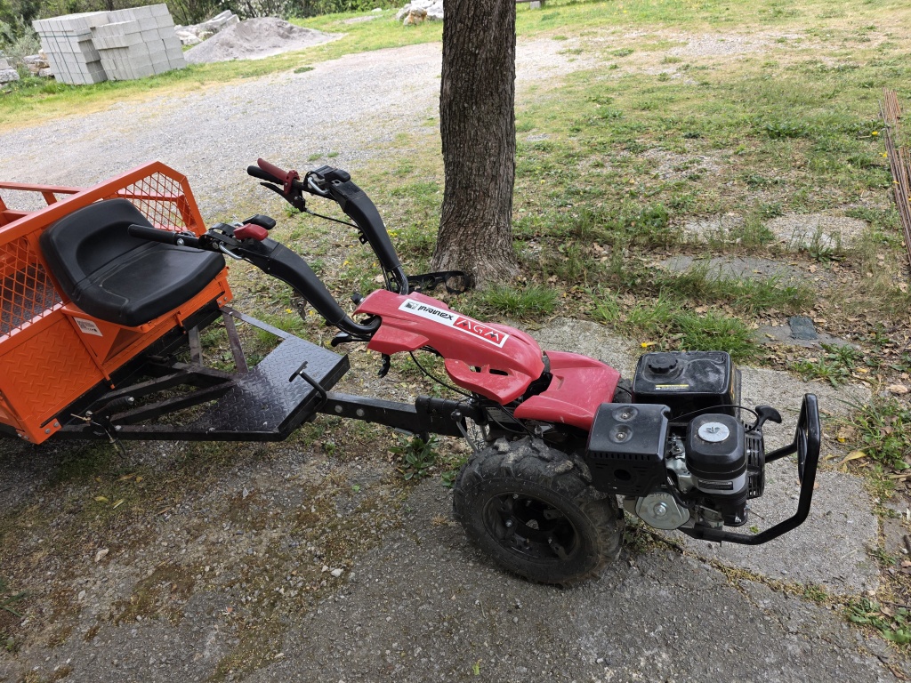 Kupljeno početkom 2025. I korišteno godinu dana za prijevoz tereta po putu koji je previše uzak za auto. Put je sada proširen pa je kultivator višak.