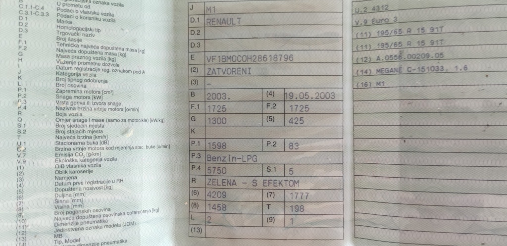 Renault Megane 1.6 16V benzin LPG prodajem