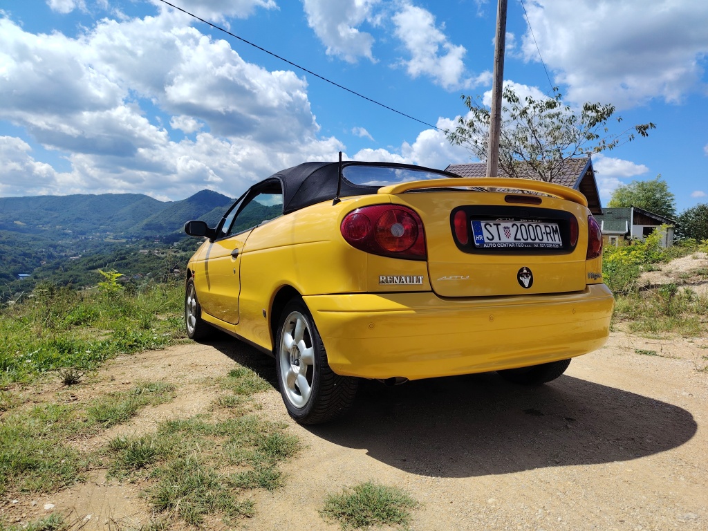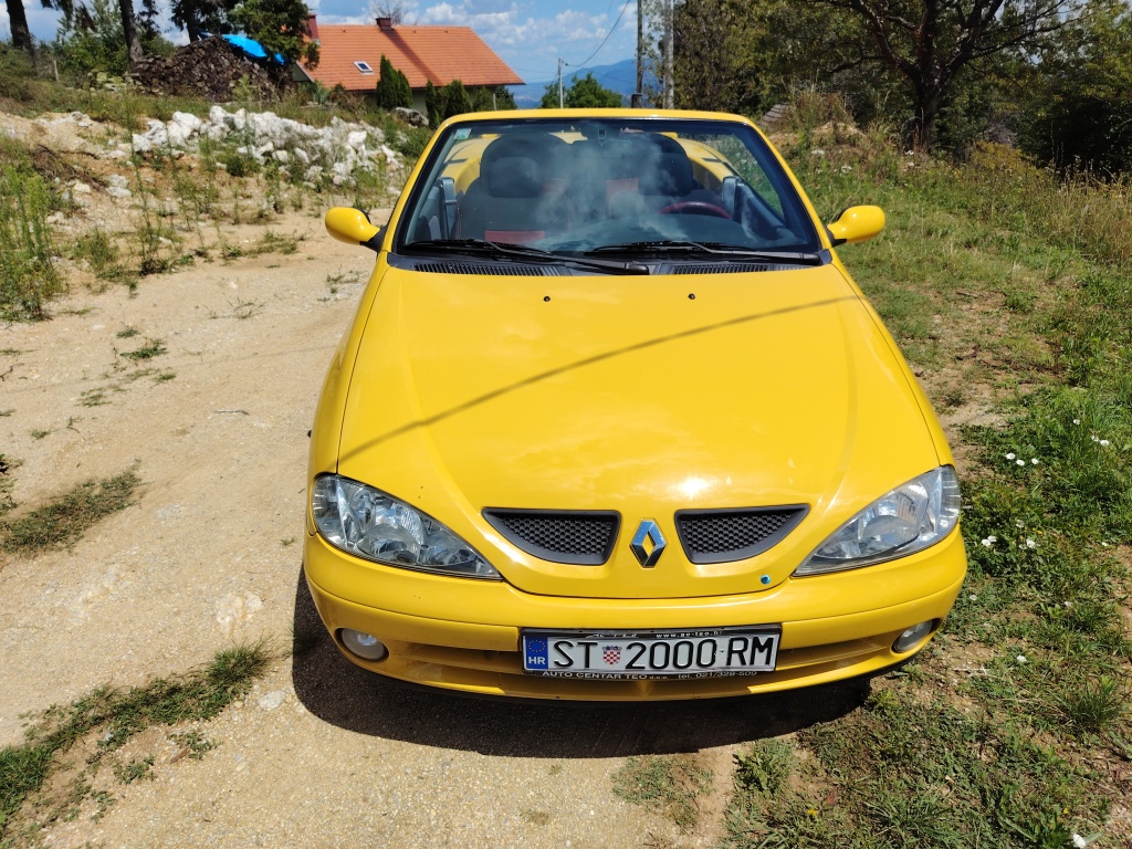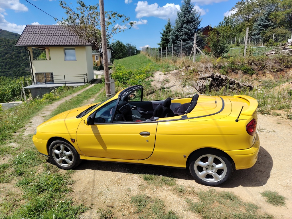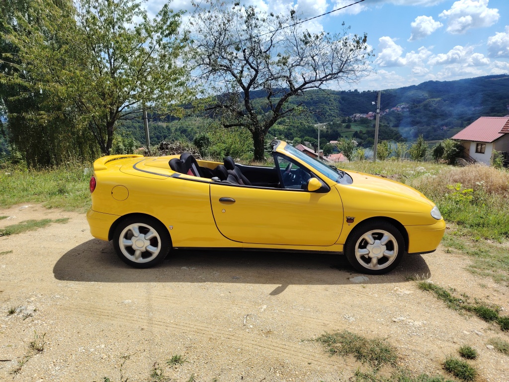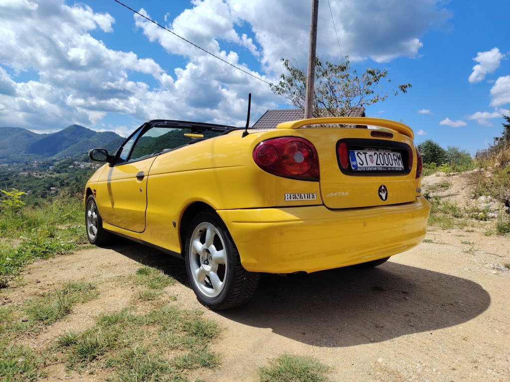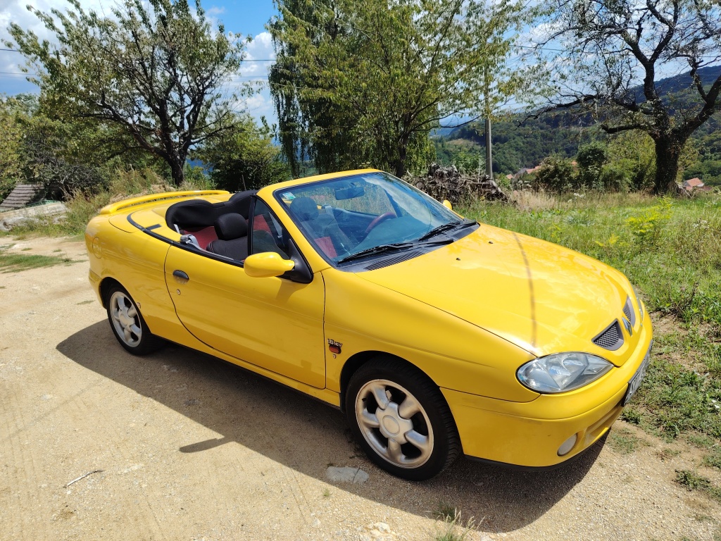 Prodajem atraktivni žuti kabriolet u vrlo dobrom stanju sa prijeđenih samo 160 918 km. 'Youngtimer', uskoro i 'oldtajmer'. S vremenom će mu cijena samo rasti, posljednji je Reno s platnenim krovom. Pogledat zadnju sliku ovdi, sa stranog oglasnika.
