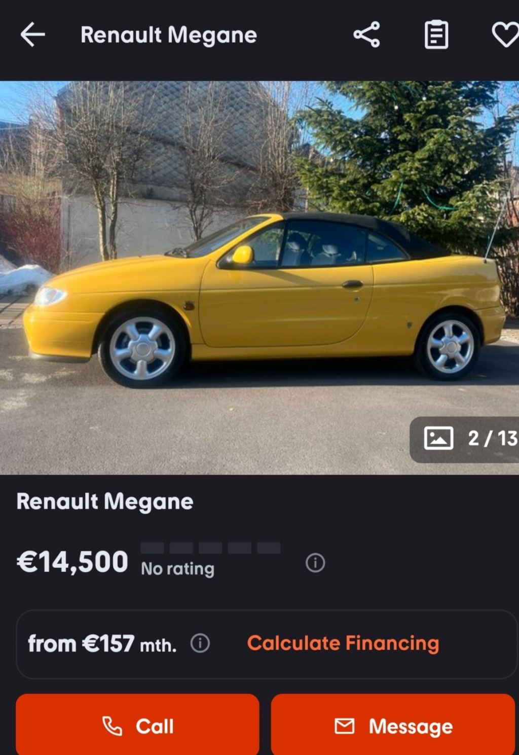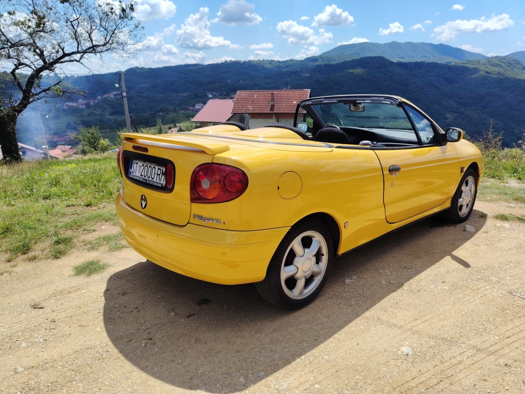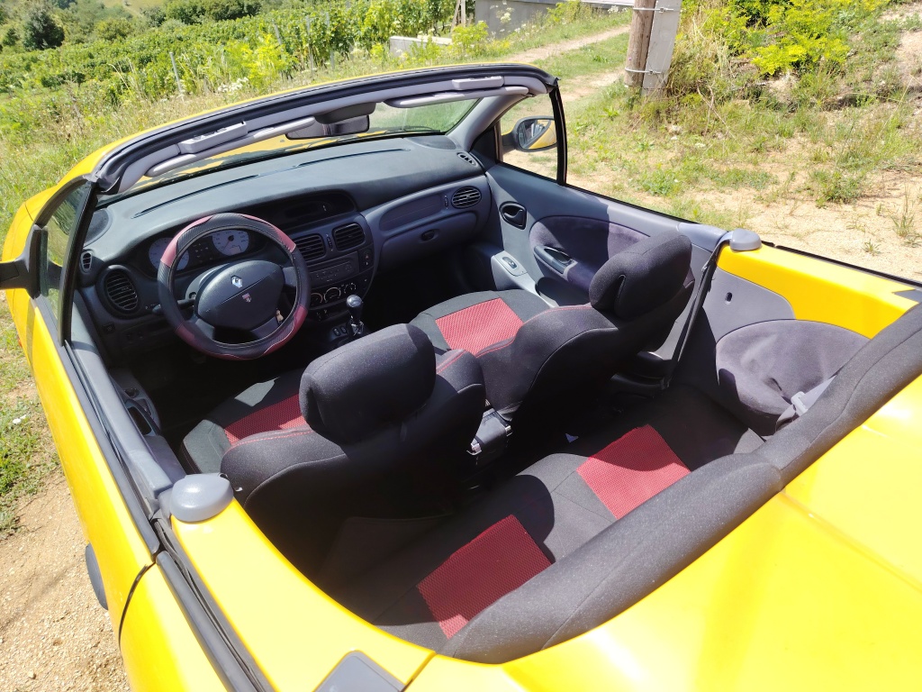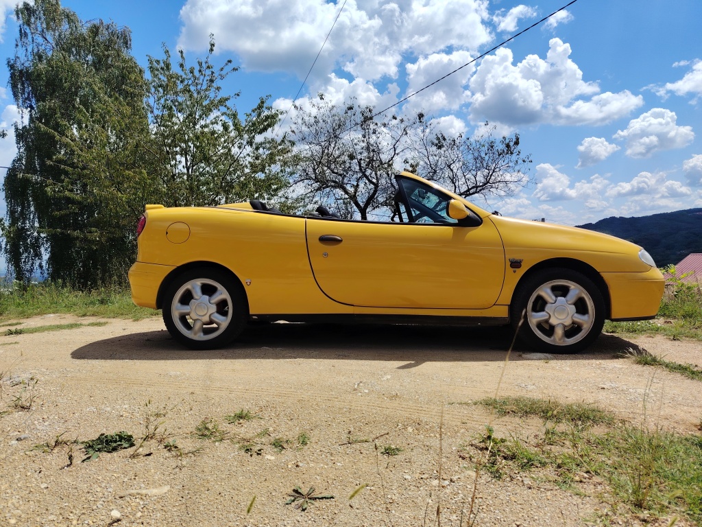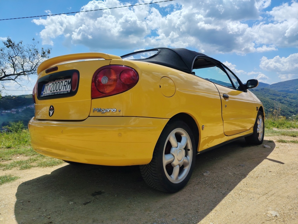 Prodajem atraktivni žuti kabriolet u vrlo dobrom stanju sa prijeđenih samo 160 918 km. 'Youngtimer', uskoro i 'oldtajmer'. S vremenom će mu cijena samo rasti, posljednji je Reno s platnenim krovom. Pogledat zadnju sliku ovdi, sa stranog oglasnika.