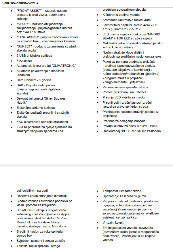 Paket opreme: Style + Dynamic (sportski paket) + paket unutarnjeg osvjetljenja + kamera za vožnju unatrag.