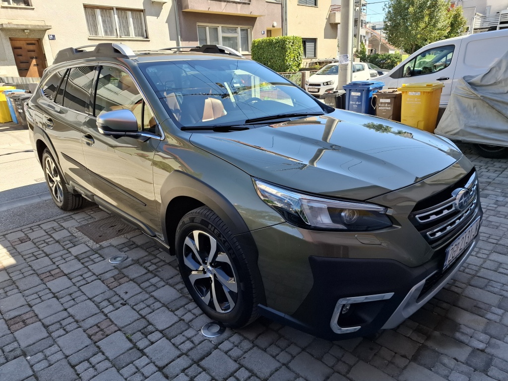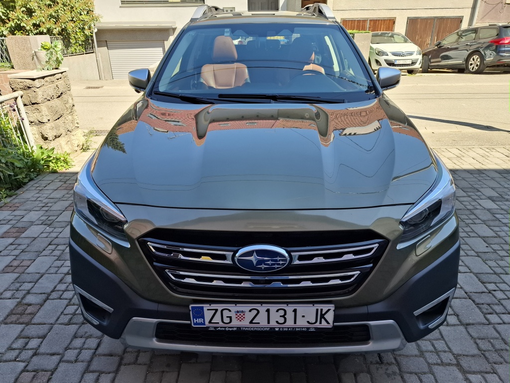 Subaru Outback Platinum Lineartronic 2022, uvezen prije 3 god. od dealera iz Njemačke, pod garancijom još 1 god., apsolutno najbolja moguća oprema, simetrični 4x4 pogon, cognac narančasta kožna unutrašnjost, 1. vlasnik u RH, besprijekoran auto za duga putovanja i offroad. Originalna vučna kuka s 13 pinskim priključkom, žičana pregrada za prtljažnik (može se demontirati). U sustavu PDV-a, glasi na firmu, ZG registracija.