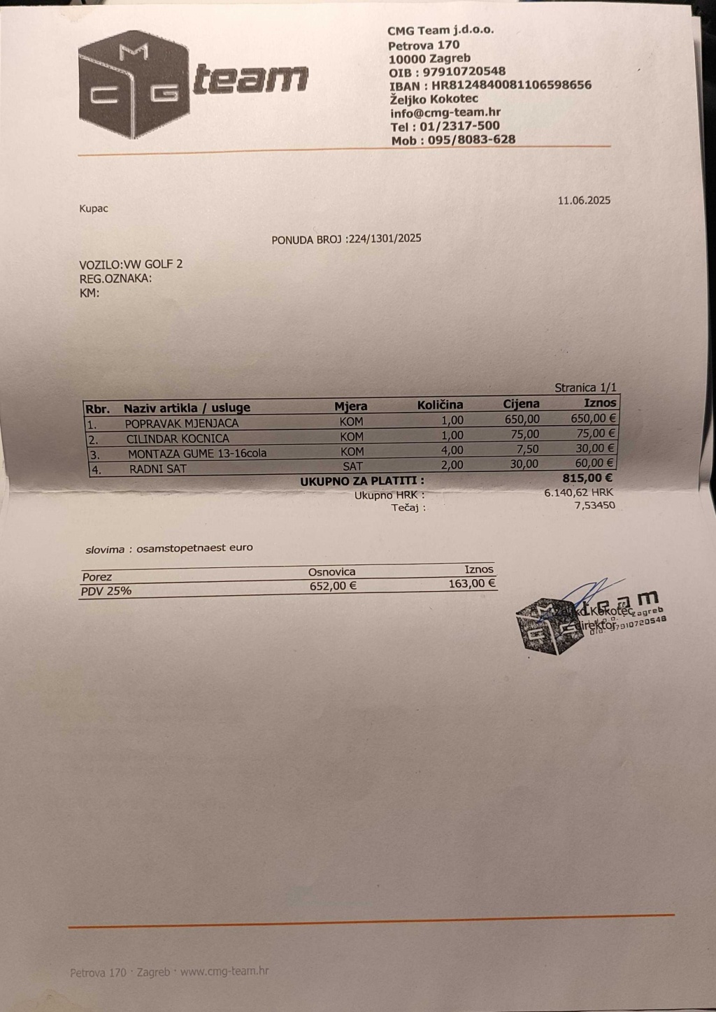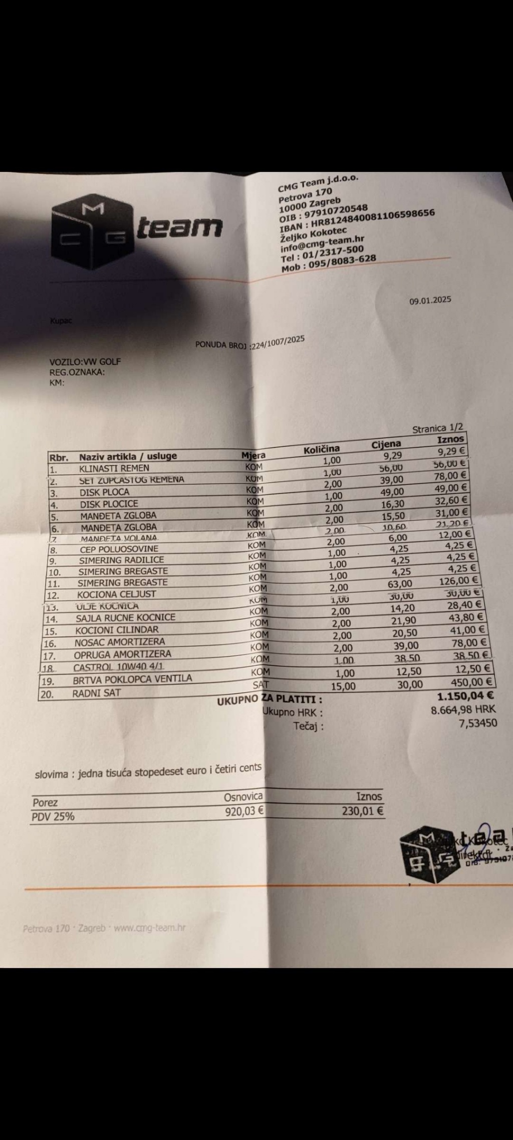 Remen i veliki servis odrađen 9.1.2025