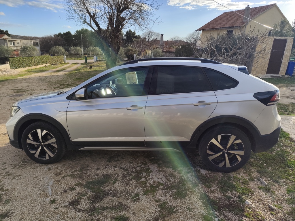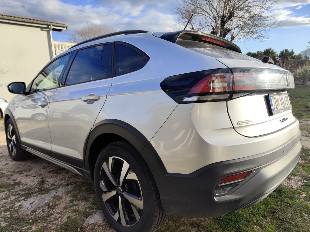 VW Taigo 1.0 TDI Life Plus, SUV, Reflex Silver metalic, automatska dvozonska klima, digitalni cockpit, Line assist, front assist, traffic assist, start/stop, keyless (paljenje, otključavanje/zaključavanje bez ključa), 17" Goodyear ljetne gume, zatamnjena zadnja stakla, rezervni kotač. Skoro novi auto, kupljen u Auto centar Šibenik. Pod tvorničkim jamstvom, reg 02/26, servis napravljen na 30000 km, ima cca 40000 km, ali svakodnevno se vozi na posao, 99% otvorena cesta, točeno Premium gorivo, sve uredno, tip top!