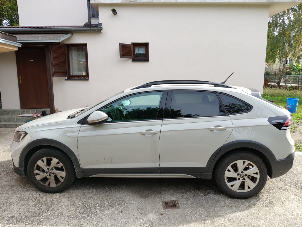 VW Taigo 1,0l Life; 81 kw (110 KS); 999 cm3; across siva nemetalik boja, prva registracija 06.03.2023., registriran do 06.03.2025.; 15700 km, garažiran, SUV coupe oblik karoserije, original čelične VW felge s zimskim gumama kao dodatak uz auto.